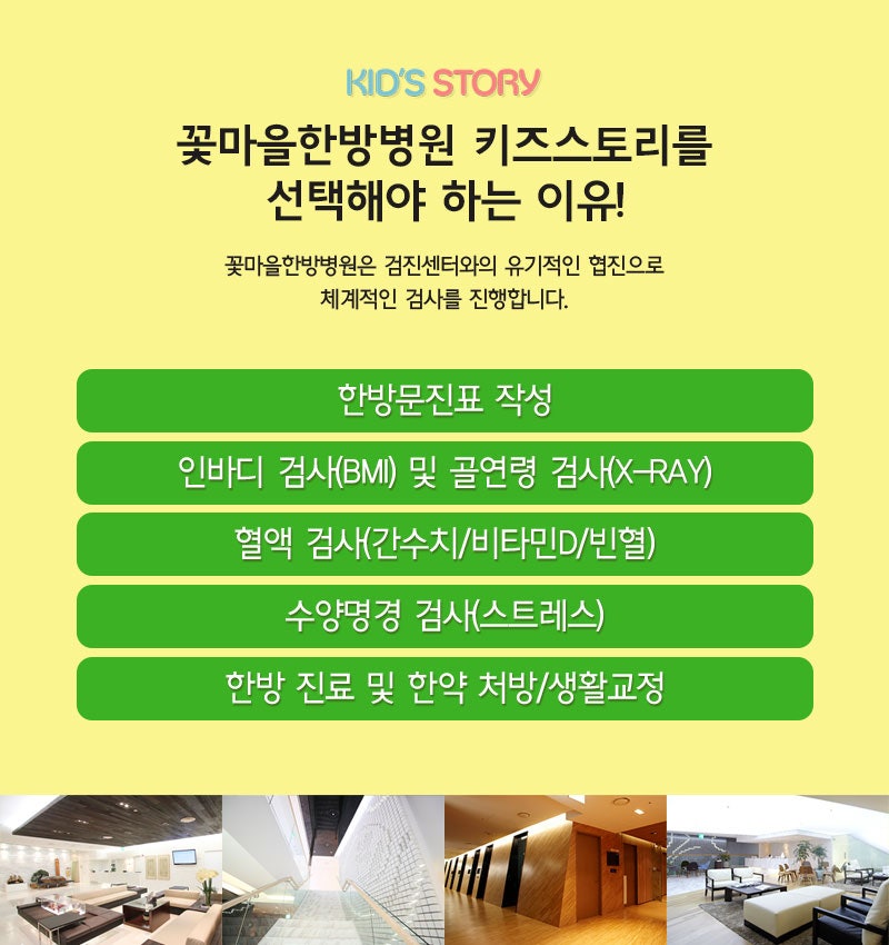 인천늘한방병원에 내원하면 어린이성장클리닉을 통해 신체적으로나 정신적으로 건강하게 성장할 수 있도록 기본 신체검사를 시행하고, 아이의 성장상태를 체크하여 아이의 체질에 맞는 1:1 맞춤진료를 시작합니다. 안전하고 우수한 품질 신선한 약제 배합으로 어린이에게 부담이 가지 않는 안심 한약재를 즐기실 수 있습니다.