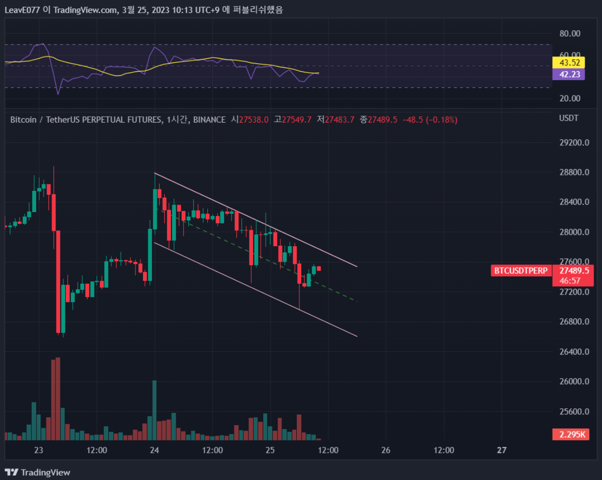 1시간 하락추세 채널입니다.